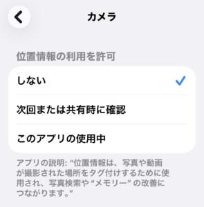 <補足>カメラの位置情報だけは許可しないにしたほうが安全