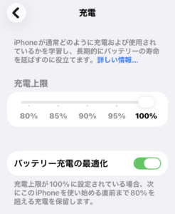 iPhone15からは充電の上限(80%・85%・90%など)を選べるようになったので、使い方に合わせて設定しておくと、さらにバッテリーへの負担を減らせる
